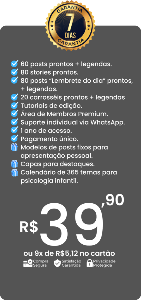 São mais de 240 materiais de Psicologia Infantil, com legendas inclusas e 100% editáveis.
